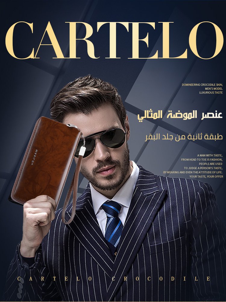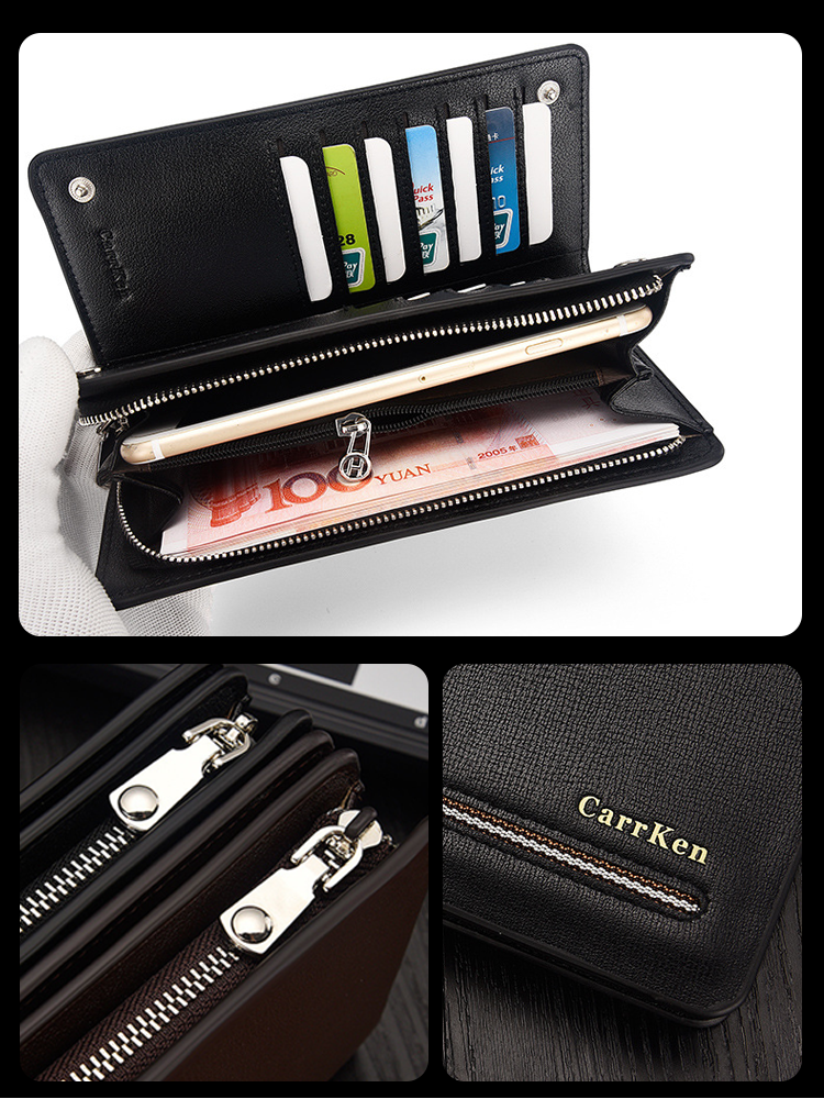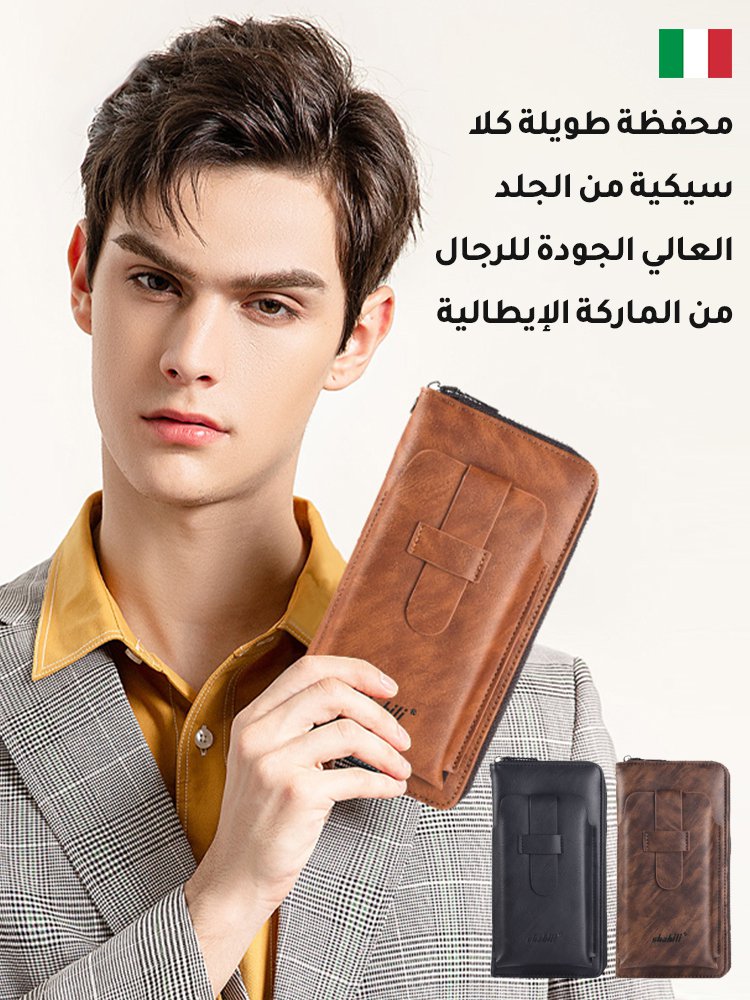 محفظة طويلة كلاسيكية من الجلد العالي الجودة للرجال من الماركة الإيطالية